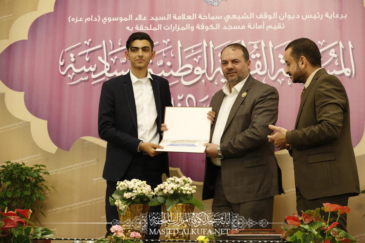 وأفادت وكالة الأنباء القرآنية الدولية(إکنا) أن التنافس استمر يومين متتالين ليحصد المتسابقون بحفظ القرآن الكريم المراكز المتقدمة الأولى كالتالي المركز الأول الحافظ مالك عبد الكاظم من مدينة بغداد، والمركز الثاني الحافظ حسين خليل من محافظة السماوة أما المركز الثالث فكان للمتسابق الحافظ محمد رضا سلمان من مدينة الكوت. أما الفائزون في التلاوة الأول مجيب محمود درويش من محافظة ديالى والفائز الثاني من محافظة النجف الأشرف القارئ رضا علاء أما المركز الثالث كان مناصفة بين القارئ حسام حميد من محافظة الديوانية، والقارئ آيدن الله وردي من محافظة السليمانية. جدير بالذكر أن الحفل الختامي للمسابقة القرآنية الوطنية السادسة للحفظ والتلاوة في مسجد الكوفة المعظم، شهد حضوراً واسعاً من قبل وفود العتبات المقدسة والمزارات الشرفة وأكاديميين ومختصين في المجال القرآني، أضافة إلى وسائل الإعلام. وفي خطوة أعدها المشاركون في المسابقة القرآنية الوطنية السادسة للحفظ والتلاوة التي تقام في أمانة مسجد الكوفة المعظم بانها إضافة إلى أنها محفل قرآني ومعرفي كبير كانت عابرة للطائفية حيث احتضنت رحاب المسجد أكثر من أربعين متسابقاً من جميع المدن العراقية، والتي تزامنت مع احتفالات المؤمنين بذكرى ولادة الرسول الأكرم محمد بن عبد الله (صلى الله عليه وآله وسلم) وحفيدة الإمام جعفر الصادق (عليه السلام).
