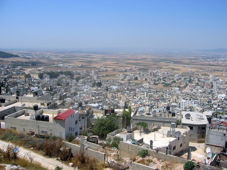ويتبع المدينة مخيم جنين الذي يقع غربها ويسكنه 16,000 لاجئ. وترتفع المدينة عن سطح البحر بمعدل 175 مترا.