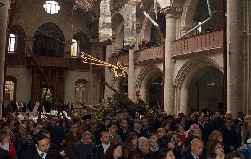 وأقام القساوسة في كاتدرائية مار الياس، التي دمرتها سنوات الحرب، الصلاة من أجل السلام في أول قداس لعيد الميلاد منذ نحو خمس سنوات حضره عشرات المصلين وبينهم ضباط روس.