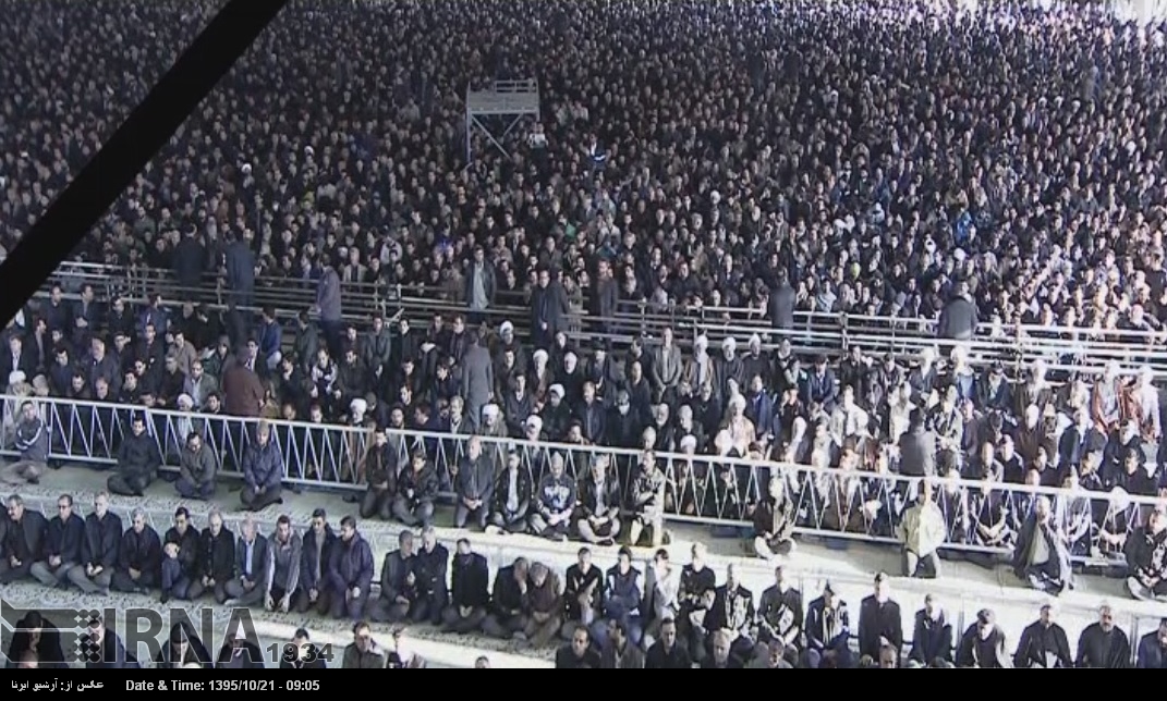 وحضر الصلاة كبار المسؤولین بمن فیهم رؤساء السلطات الثلاث والمسؤولین الحكومین والعسكریین وحشود غفیرة من ابناء الشعب الایراني.