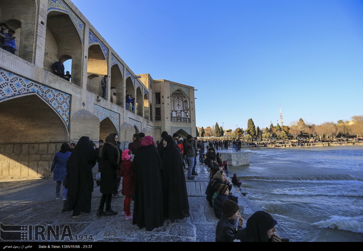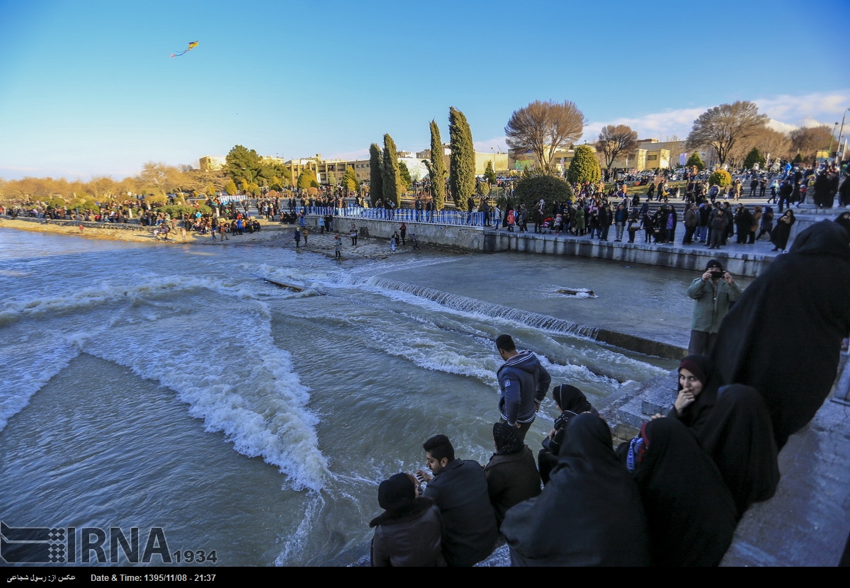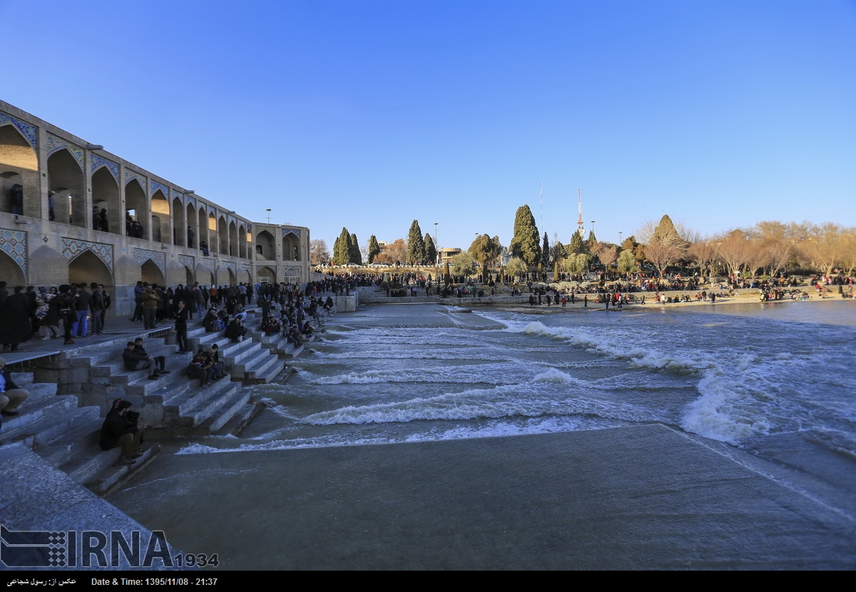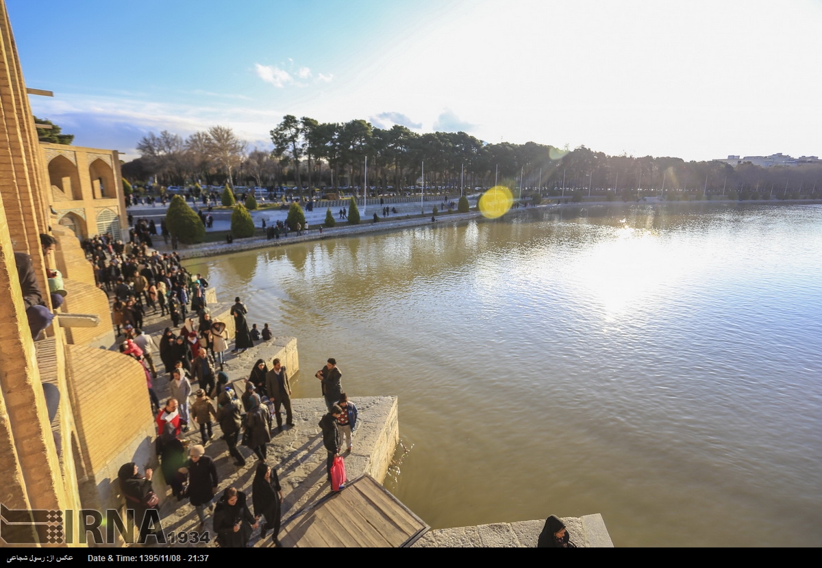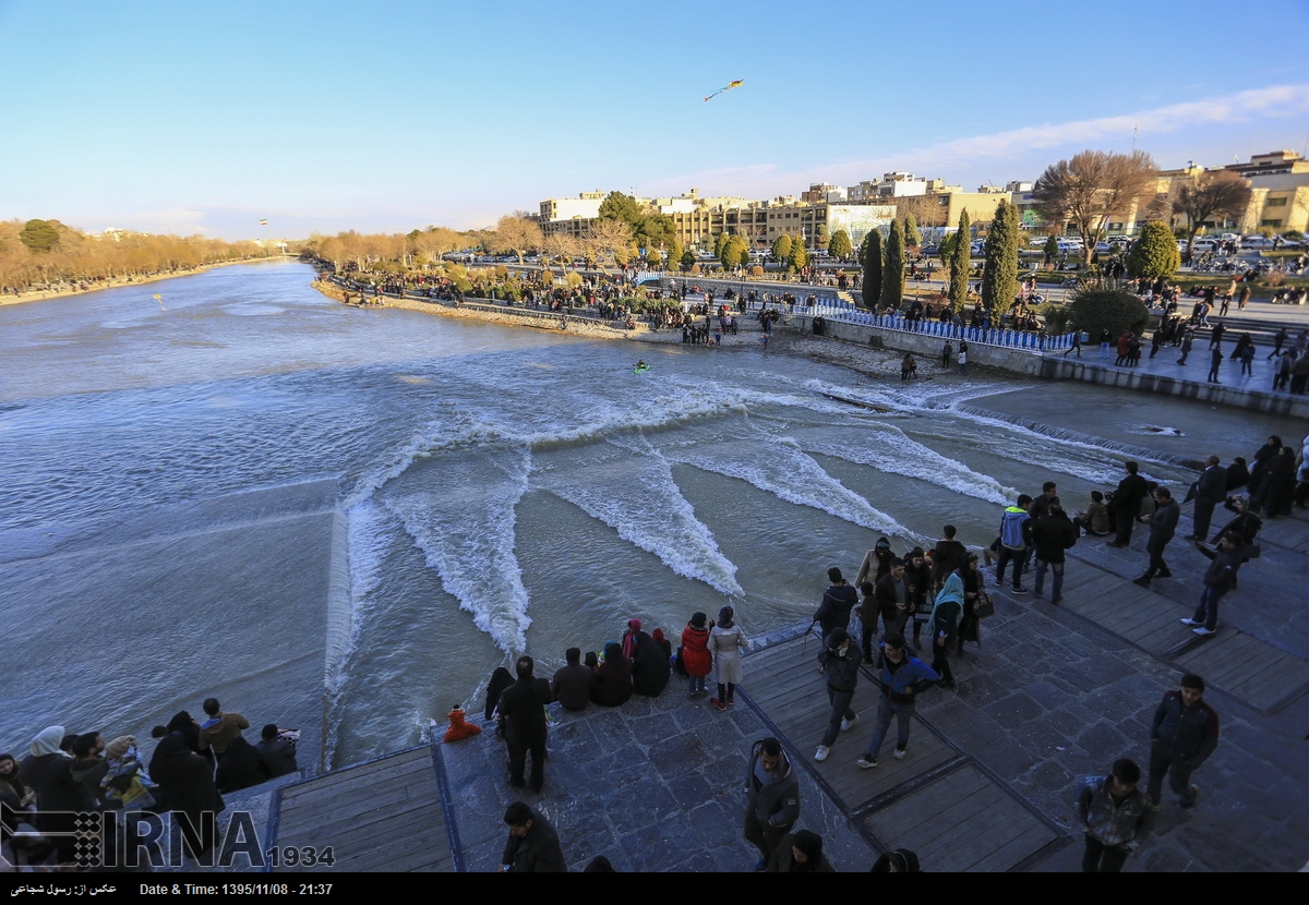 اعاد جريان ماء نهر"زاينده رود" في محافظة اصفهان الايرانية (وسط ايران) بعد جفافه لمدة طويلة تحت جسر "سي و سه بل" الاثري فوق هذا النهر الذي يرجع قدمته الى 300 سنة، فرحة أهالي المدينة الذين خرجوا لالتقاط الصور مع مياه النهر الذي يشكل أحد ابرز معالم مدينتهم.