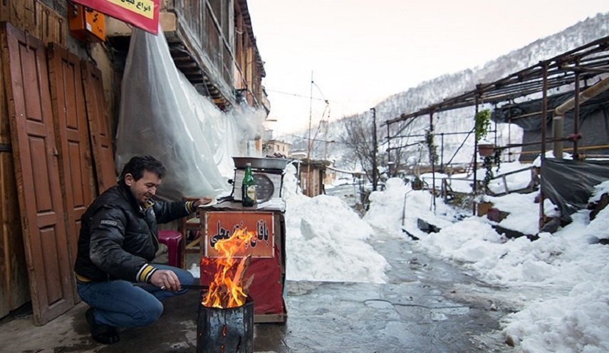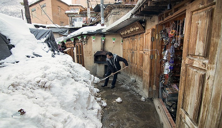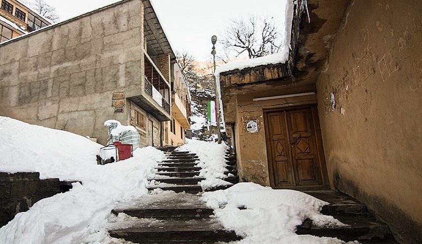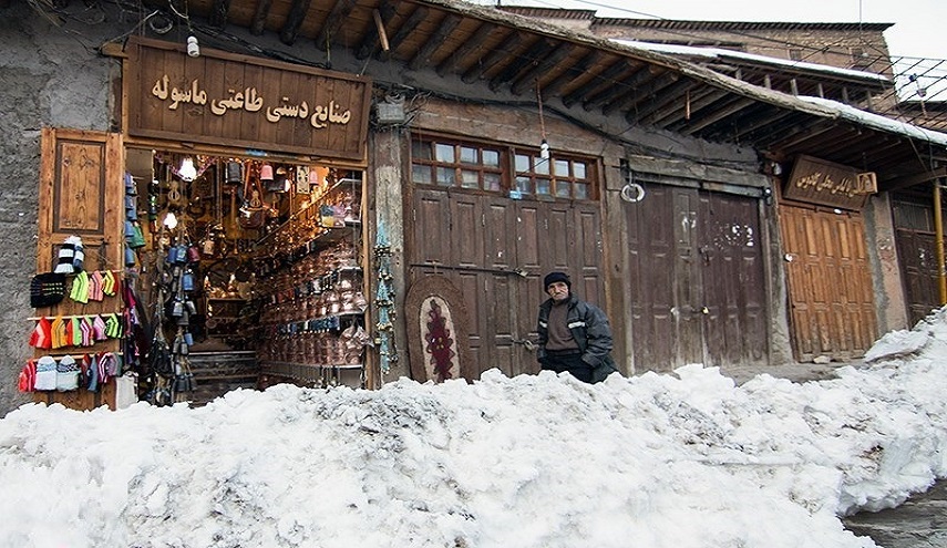 ماسولة، القرية السياحية والتراثية الجميلة الغافية على سفح جبل شاهق في محافظة كيلان والتي لا تدخل معظم طرقها السيارات، هي الاخرى ارتدت اجمل ثيابها البيضاء!