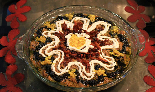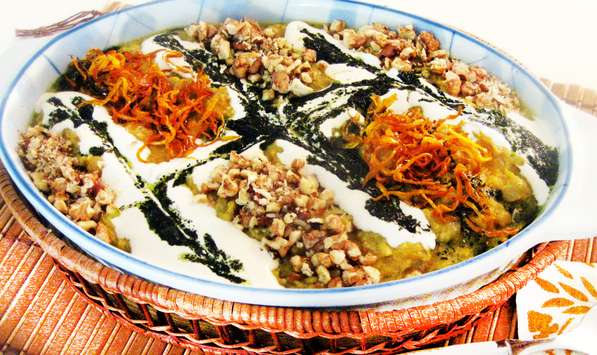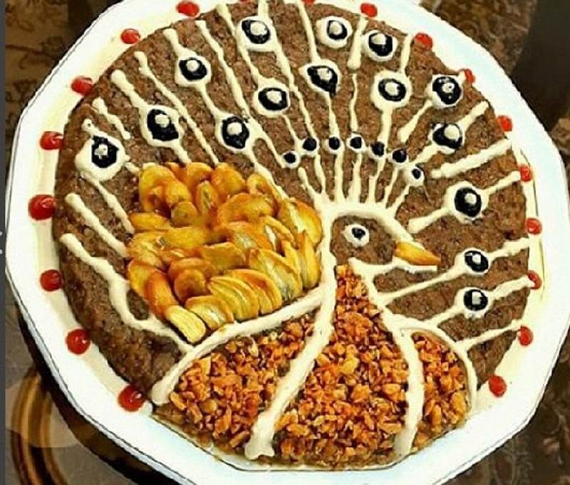 3-  تحمر شرائح البصل وتنثر على وجه كشك الباذنجان عند التقديم.