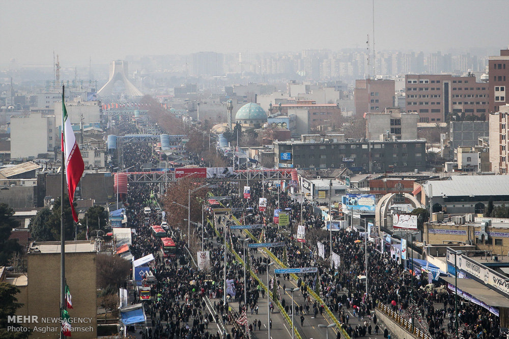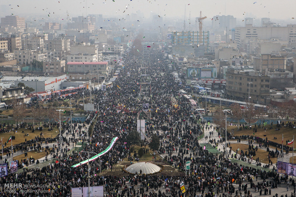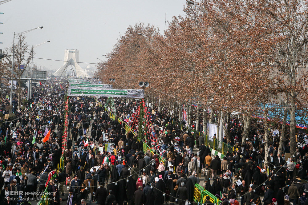 يتوافد المشاركون في مسيرات ذكرى انتصار الثورة الاسلامية من مختلف أبناء الشعب الايراني وقياداته ومسؤوليه.