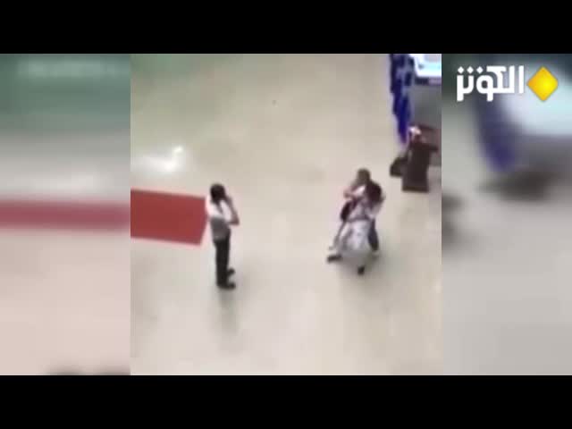 وقد أظهر المقطع تدخل فتاة أخرى يبدو أنها شرطية ترتدي زيا تمويهيا اقتربت من الخاطف وأعطته فيما يبدو كوبا من الماء قبل أن تطلق عليه النار وتنقذ الرهينة.