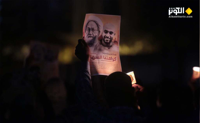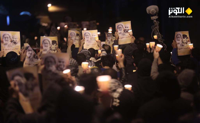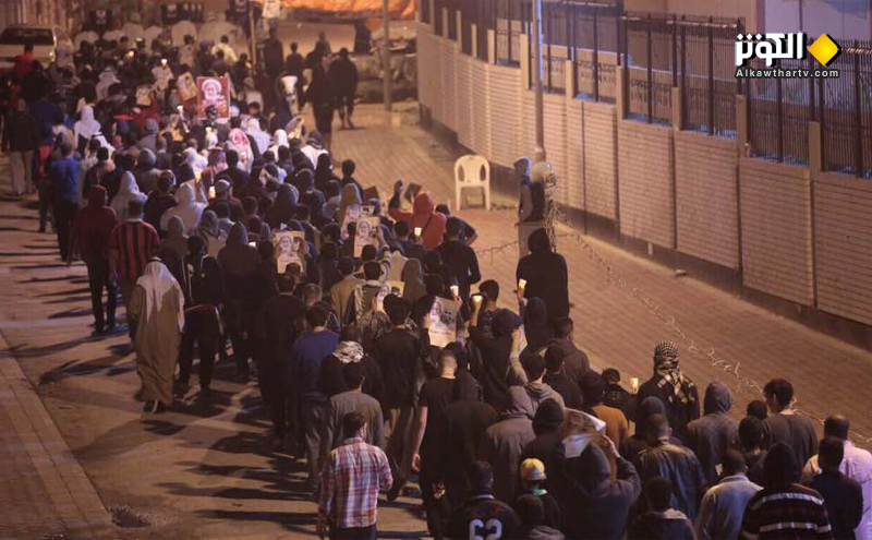 وليلاً، انطلقت مسيرات الحداد في عدد من مناطق البحرين، وحمل المحتجون الشموع بجانب صور شهداء الحرية الثلاثة رضا الغسرة ومحمود يحيى ومصطفى يوسف. ففي بني جمرة انطلقت مسيرة بالتوازي مع انطلاق مسيرة ممثالة في الدراز في محيط منزل آية الله قاسم، وحمل المشاركون في المسيرتين الشموع وصور آية الله قاسم وصور الشهداء الثلاثة، ورردو هتافات ترفض حكم الفرد والاستفراد بثروات البلاد.