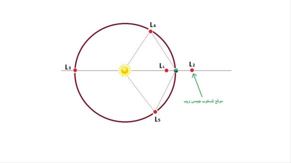وهذه النقاط اللاجرانجية وعددها خمس تسمح بأن يبقى الجسم فيها ثابتا في موقعه أثناء دورانه حول الأرض وهي بدورها تدور حول الشمس مرة كل سنة، أي أن تلسكوب جيمس ويب سيكمل دورة واحدة حول الشمس مرة كل سنة لكنه ثابت في مكانه حول الأرض في الجهة البعيدة عن الشمس، وسيكون مزودا بشراع كبير واق من أشعة الشمس يبلغ حجمه حجم ملعب تنس لإبقاء مرآته ومعداته العلمية الأخرى عند درجة الحرارة المطلوبة وهي أقل من 50 كلفن أو ما يعادل °220 تحت الصفر المئوي.