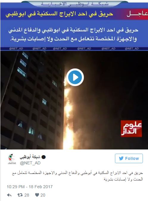 وأظهرت لقطات فيديو نشرت على مواقع التواصل الاجتماعي اندلاع نيران في عدد من طوابق المبنى، فيما أخذت كرات لهب تتساقط من أعلى المبنى.
