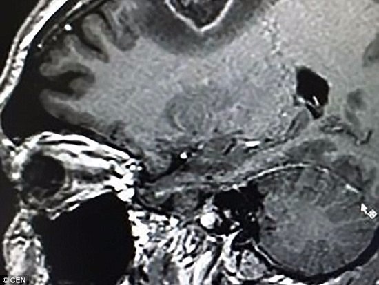 وأظهر المسح بالأشعة السينية أن لديه ورما فى الدماغ على شكل قلب، لذلك اضطررت إلى الخضوع لعملية جراحية، وكانت هناك طريقتان، وهما: التخدير الكامل، أو الاستيقاظ أثناء الجراحة .