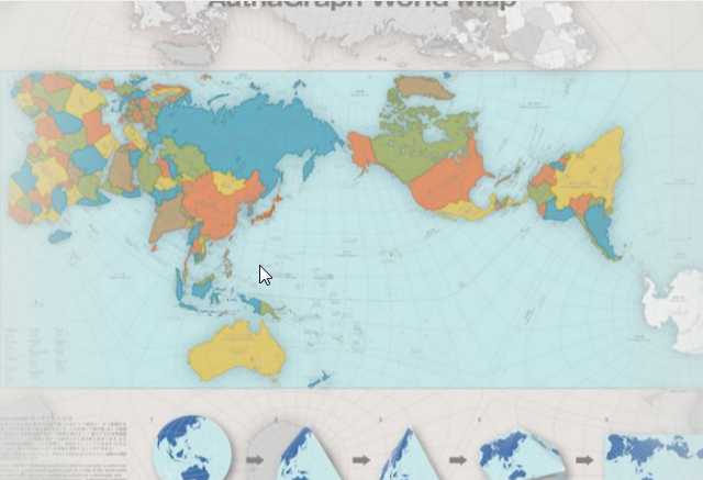 المفاجأة، وفقًا للمقال، كانت العام الماضي عندما قام معماري وفنان ياباني «هايمي ناراكاوا» الحاصل على الدراسات العليا في الإعلام من جامعة Keio University’s بطوكيو، قام بحلّ كل هذه المشكلات في خرائط مركاتور وجال وبيترز، عبر تصميمه AuthaGraph World Map الذي نال عليه جائزة عالمية في التصميم.