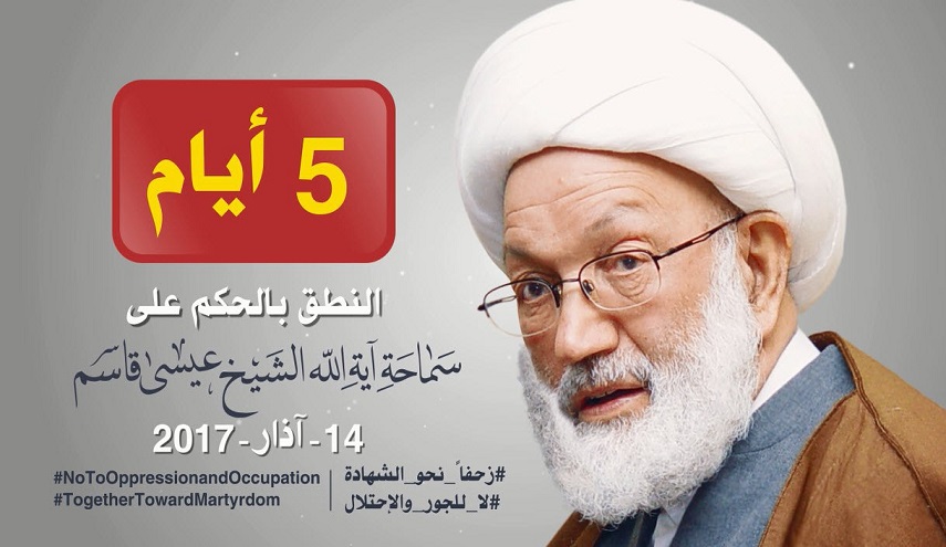 ومن المقرر ان تنطق المحكمة البحرينية في 14 آذار الجاري بحكمها في قضية الشيخ عيسى احمد قاسم.