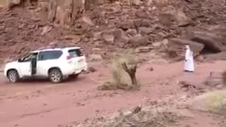 وأظهر المقطع، محاولة شخص اقتلاع شجرة عبر ربطها بسيارته قبل أن يكسر جذعها ويصطدم بزجاج السيارة ليحطمه بقوة، ما اعتبره البعض "انتقام الشجرة من الشخص المعادي للبيئة"!.