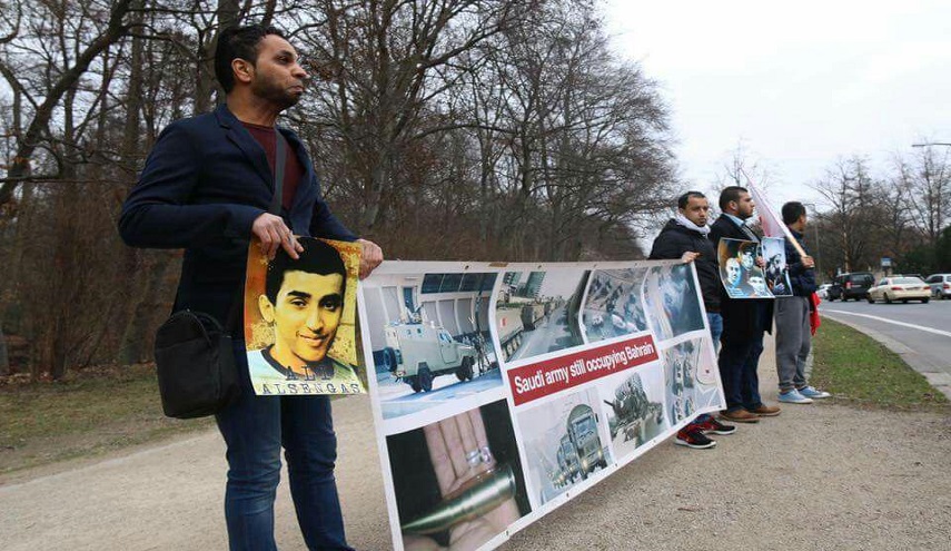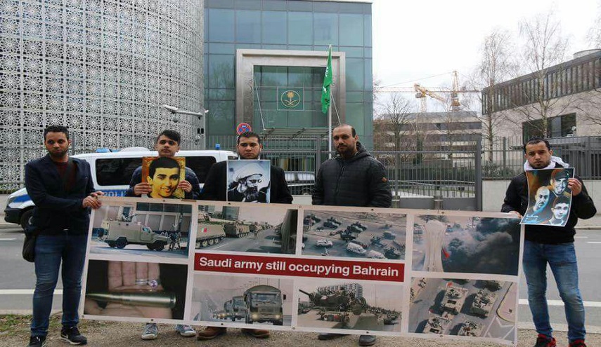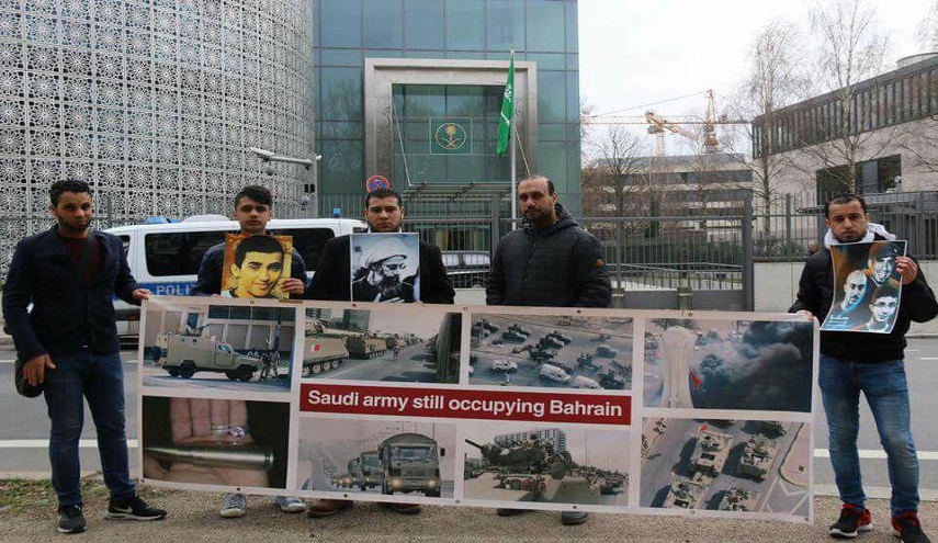بمناسبة الذكرى السادسة لإحتلال الجيش السعودي للبحرين وأرتكابه مجزرة دموية بحق المعتصمين في دوار اللؤلوة في مارس 2011 واحتجاجاً على استهداف آية الله الشيخ عيسى أحمد قاسم، أقامت المعارضة البحرانية في ألمانيا يوم الثلاثاء الموافق 14 مارس 2017، وقفه أستنكارية أمام سفارة آل سعود في برلين حضر فيها أبناء الجالية البحرانية .