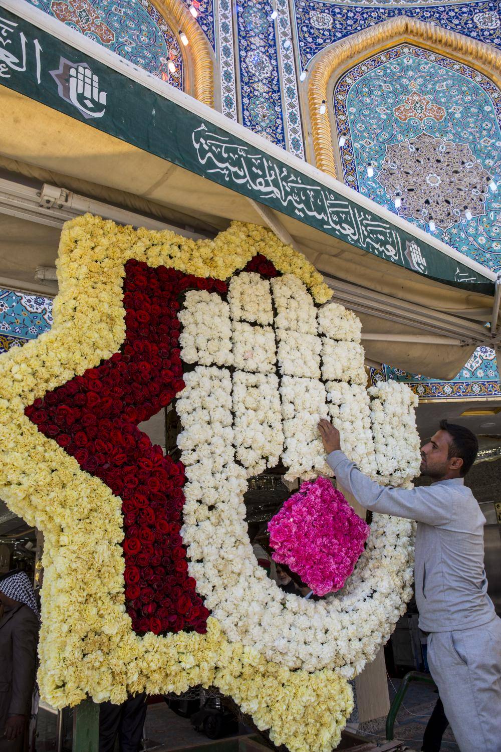 وإحياءً لأفراح الأمّة الإسلاميّة بمناسبة الذكرى العطرة لولادة بضعة الرسول الأعظم محمد(صلّى الله عليه وآله)، فقد قامت ملاكاتُ مجموعة مشاتل الكفيل التابعة لقسم الشؤون الخدميّة بتزيين الصحن الشريف من الداخل والخارج بأنواع وألوان مختلفة من الزهور، لتُدخل السرور على قلوب الموالين والمحبّين وتجعلهم يعيشون حالةً من الابتهاج والفرح ولتعكس الأجواء الاحتفاليّة بهذه المناسبة، حيث تمّ نشر مجاميع من أشجار وورود الزينة التي شُكّلت خصّيصاً لهذه المناسبة عند مداخل بوّابات العتبة المقدّسة وفي أرجاء الصحن الشريف.