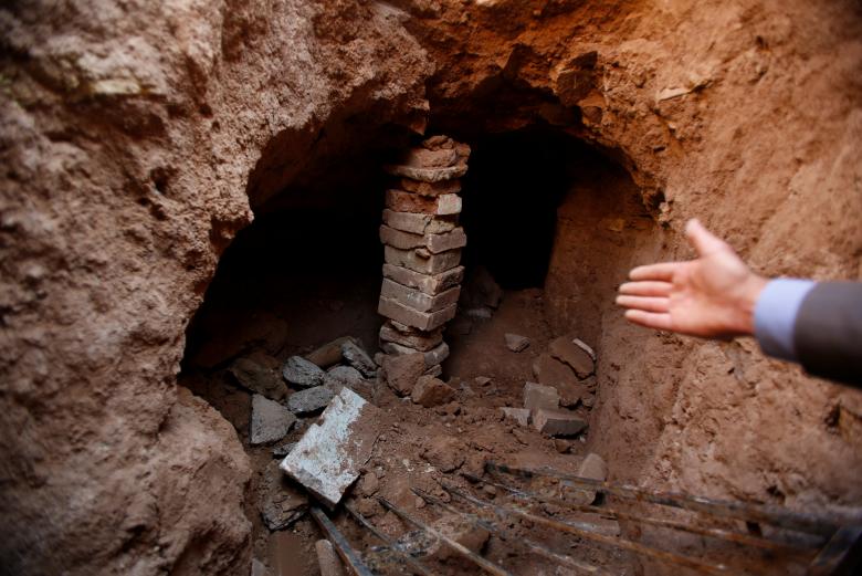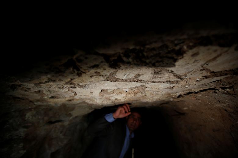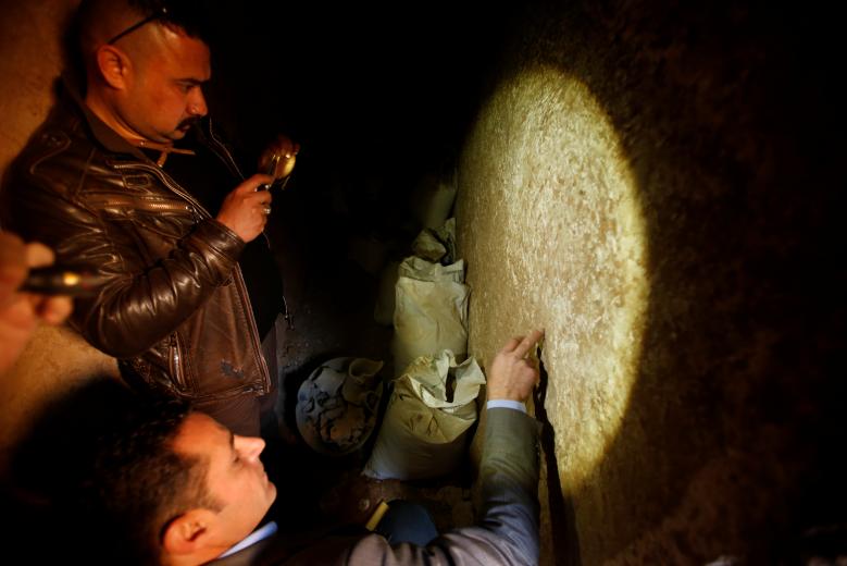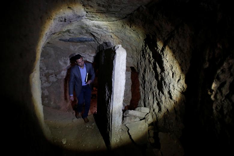 بحسب ما تناقله ناشطون على موقع التواصل الاجتماعي الفيسبوك، فان احد الانفاق التي عثر عليه تحتوي على منحوتات متنوعة منها للثور المجنح.