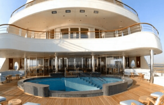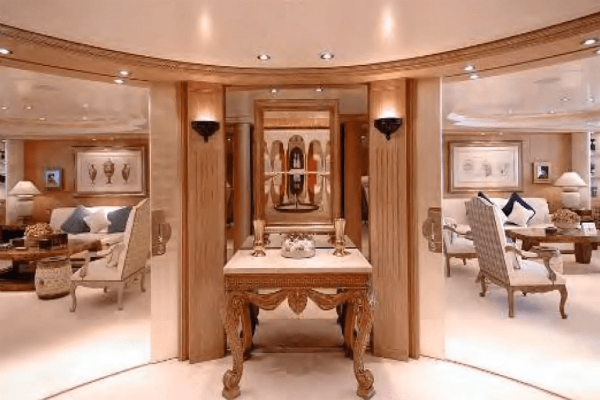 ويأتي اليخت الفاخر بأسطح فاخرة جدًا من 8 أسطح مع مستشفى مجهز بالكامل، ومكتب، وصالة، ومكتب للسكرتارية، وصالة رياضية، والسينما، ومكتبة، ومركز رجال الأعمال، وصالون، وتجميل وسبا.