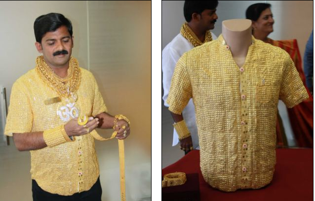 اليكم الصور لرجل ثري يرتدي قميص من الذهب