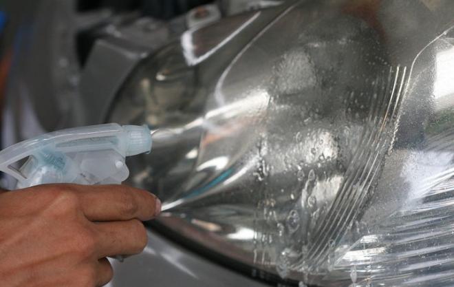 4- ماء دافئ : احضر رشاش ماء مملوء بلماء الدافئ ، وقم برش بعض منه على سطح مصباح السيارة، ثم قم بمسحة بواسطة منديل ورقي قوي " المخصص لامتصاص الزيوت"،وقم بمسح المصباح بصورة دائرية كأنك تقوم بعملية صقل للزجاج .