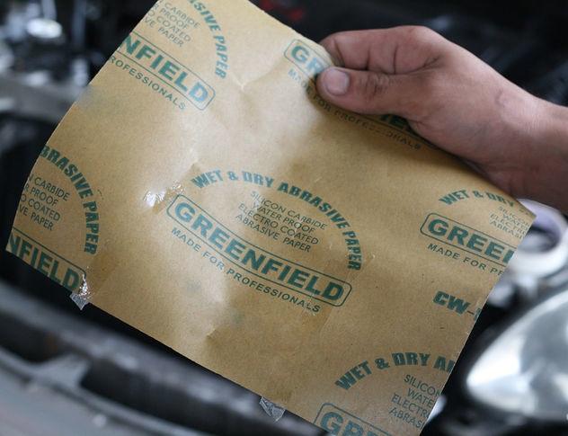 6- استخدام الورق الرملي لتنظيف مصابيح السيارة المليئة بالخدوش : يمكنك استخدام ورق الزجاج "الرملي أو السنفره"،في اعادة لمعان و نعومة مصابيح سيارتك مرة أخرى ، فقط احرص على استخدام نوع جيد ناعم ليس عالي الخشونة.
