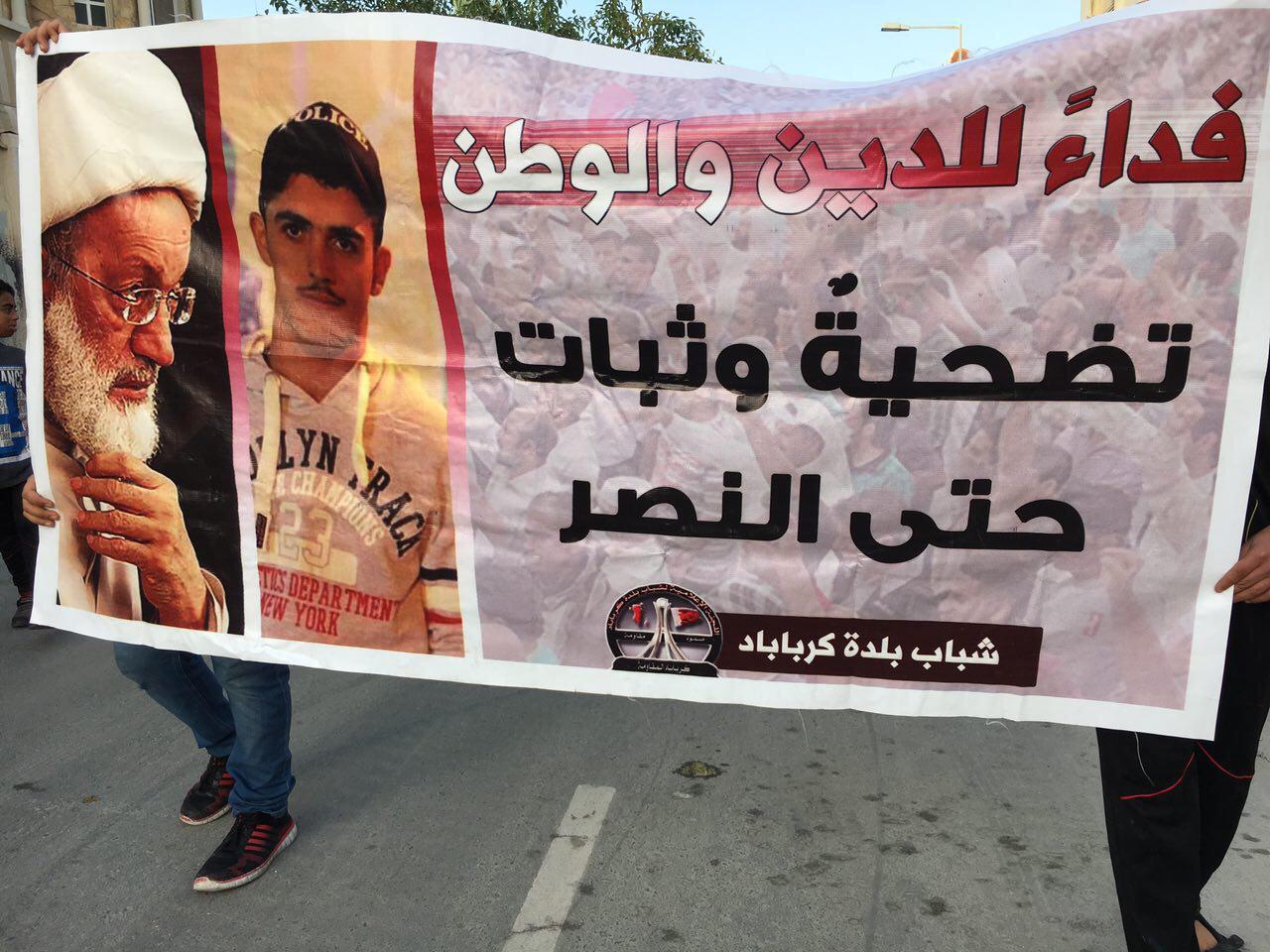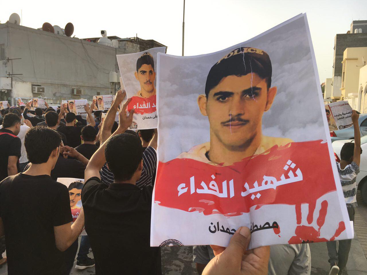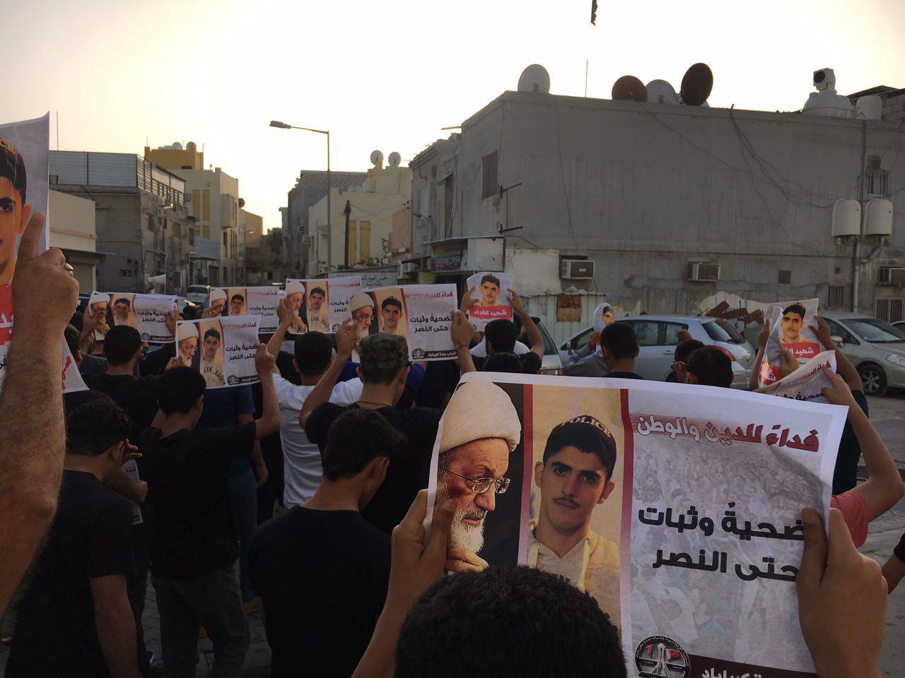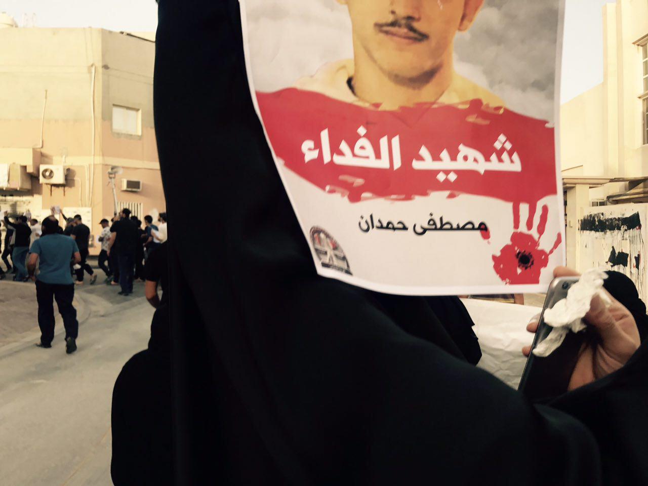 خرجت مسيرة غاضبة في الدراز بالبحرين الجمعة تنديدا بجريمة النظام في قمع المسالمين بمنطقة ميدان الفداء واستشهاد الفدائي مصطفى حمدان بالرصاص الحي، حسب ما نقلت قناة البحرين الاعلامية.