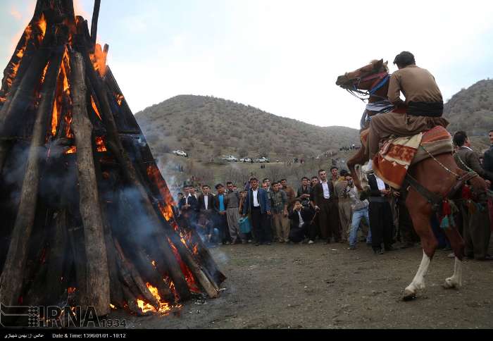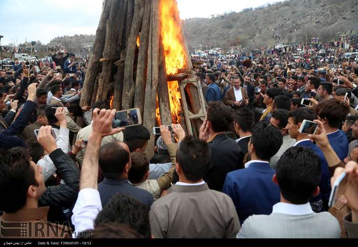 نشرت وكالة ارنا صورا عن احتفال الأيرانيين الاكراد بالنوروز.. في قرية "جور ننه" على بعد 20 كم عن مدينة مريوان بمحافظة كردستان غرب البلاد.