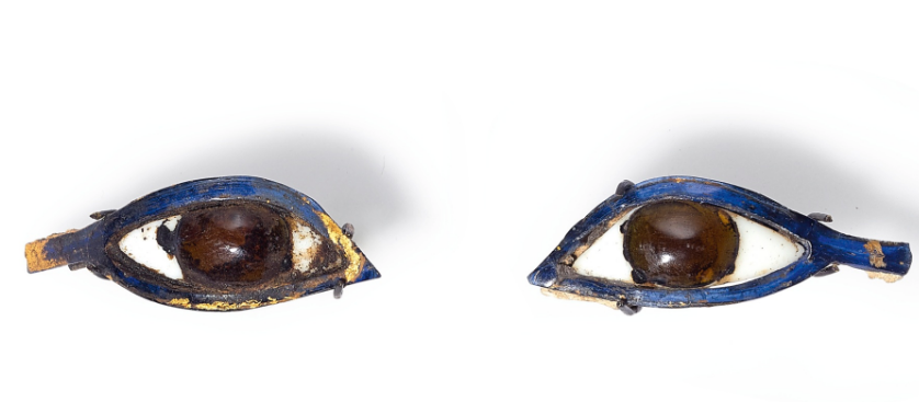 زوج من العيون مصنوعة من الزجاج المصقول والمرصع، يعود تاريخها إلى العصر المتأخر (1075-342 قبل الميلاد). ويعرضها المزاد للبيع بسعر ما بين 5 و7.7 ألف دولار.