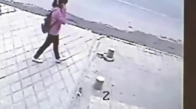 فتاة شابة كانت تمشي وهي تتكلم بنقالها الا ان حفرة ظهرت فجأة تحت قدميها وجرتها الى عمق سبعة امتار، الا ان من حسن حظ هذه الفتاة راها سائق سيارة اجرة فانقذها من الموت الحتمي.