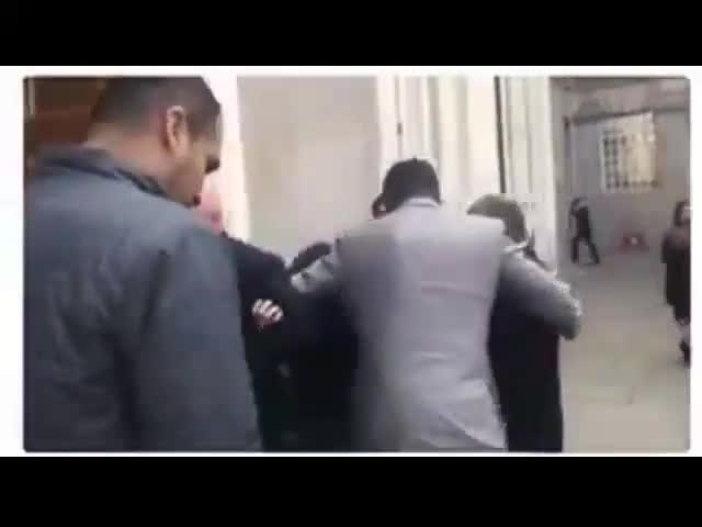 وتناقلت عدة حسابات في مواقع التواصل الاجتماعي مقطع فيديو يبين محاولة شاب منع عسيري من الدخول إلى مبنى وتدخل الحراس وأبعدوه بالقوة، ولكن توجه عسيري للناشط بحركة مشينة بأصبعه.
