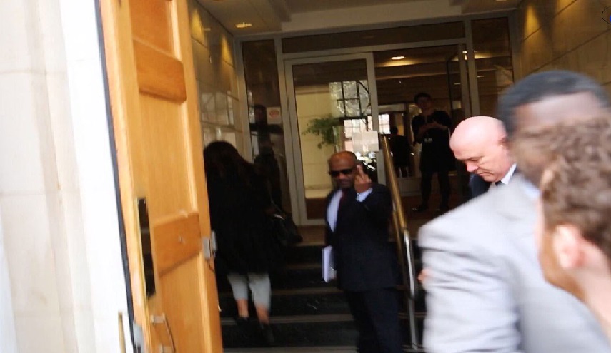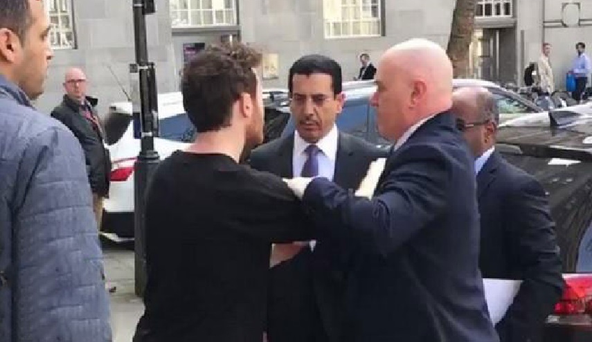 ونشرت المواقع لقطات مصورة لناشط بريطاني يصرخ بوجه عسيري واصفاً اياه بالمجرم، فيما قام شخص آخر بإخراج البيض من كيس كان يحمله وقام برشقه على عسيري.