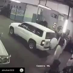 وبدون ان يدري ربما ابنه سوف يقوم بعمل ما وفجاة تحركت السيارة الى الخلف ويندهس الاب ونشاهد في الفديو ان احد المستطرقين ينزل بسرعة من سيارته ويركض الى سيارة الاب ويشغل السيارة الى الامام قليلا ثم يخرج الاب وهو يشكو من الالم الذي اصابه.