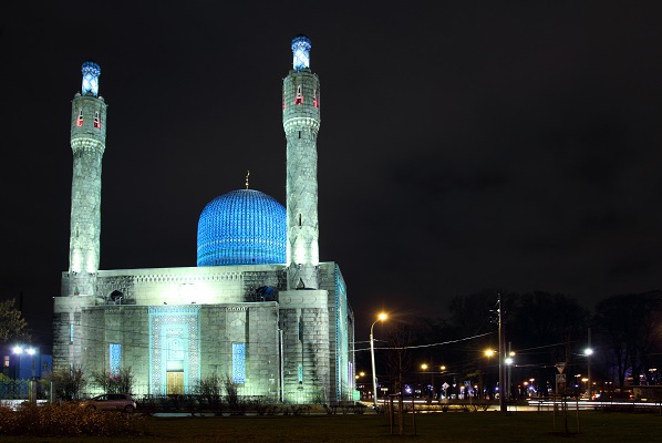 تم بناء المسجد الأزرق عام 1910 في جزيرة بتروغرادسكي، ثالث أكبر جزيرة في نهر النيفا بسان بطرسبورغ. وقبة المسجد تشبه إلى حدّ كبير ضريح تيمورلنك في سمرقند، أوزبكستان.