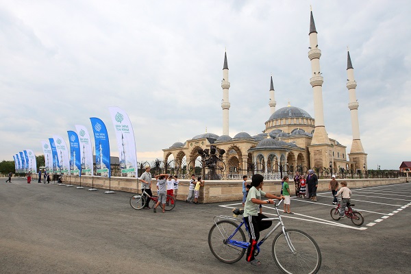 بُني مسجد قلب الشيشان، والذي سُمي على اسم رئيس جمهورية الشيشان، أحمد قادريروف، على النمط التركي، ويشبه إلى حدّ كبير المسجد الأزرق الشهير في اسطنبول. ومسجد قلب الشيشان مجهز بكاميرات ويب موضوعة خارج المسجد والتي تبث بشكل مباشر عبر الانترنت على مدار الساعة في كل أيام الأسبوع.