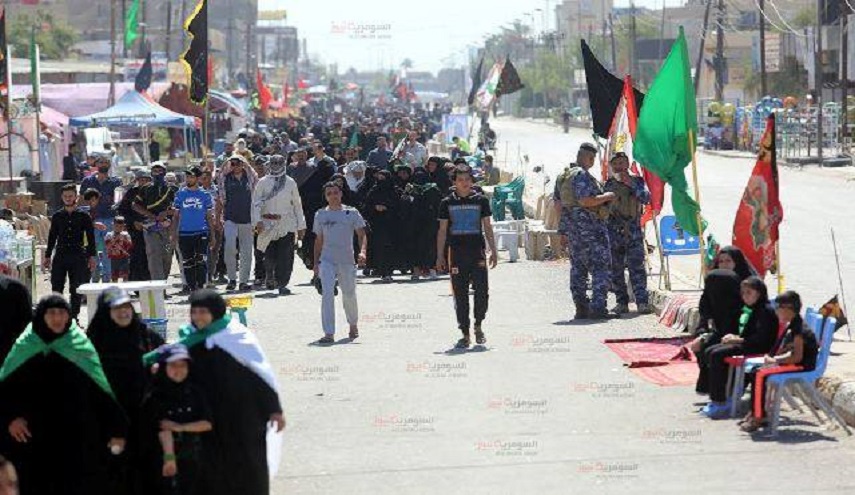 وكما جرت العادة انتشرت على جانبي الطريق المؤدية إلى الكاظمية مئات المواكب والهيئات التي تعمل على تقديم الماء والطعام وكذلك الأدوية للزائرين الذين قدموا من محافظات عراقية وبلدان عدة.