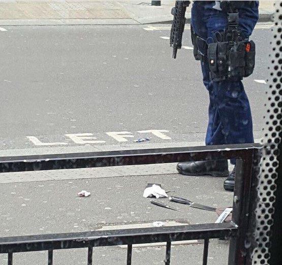 وقال شاهد عيان لـ "بي بي سي" إنه رأى سكينين ملقيتين على الأرض.