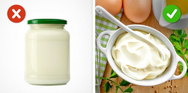 يفضل عدم شرائه من السوبر ماركت لأنه تضاف اليه مثبتات ونشا للحفاظ على طعمه وسمكه لأطول فترة ممكنة ، فيمكنك إعداده فى المنزل باستخدام البيض والخل والزيت النباتى والتوابل.