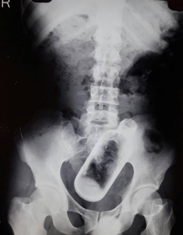 وأصيب الرجل بالصدمة عندما أدرك أن داخل معدته زجاجة طولها 16 سم، حيث فوجئ الأطباء بالزجاجة داخل جسمه بعد إجراء فحص بالأشعة السينية.