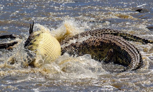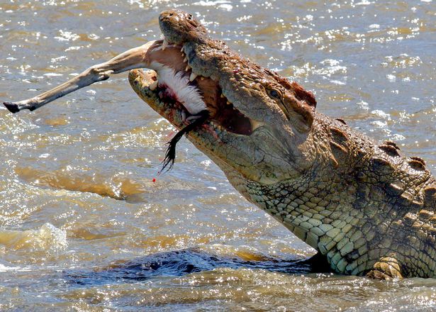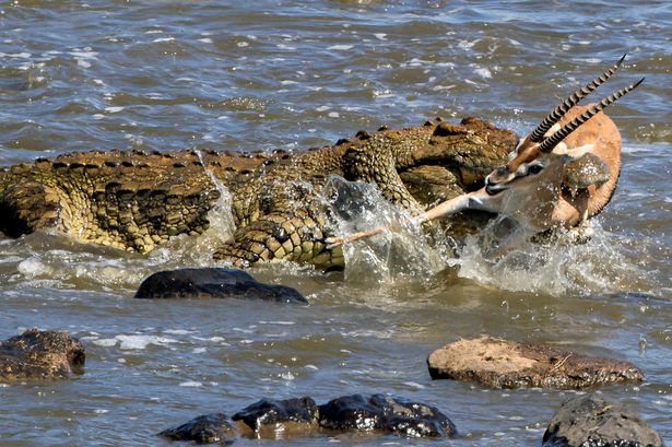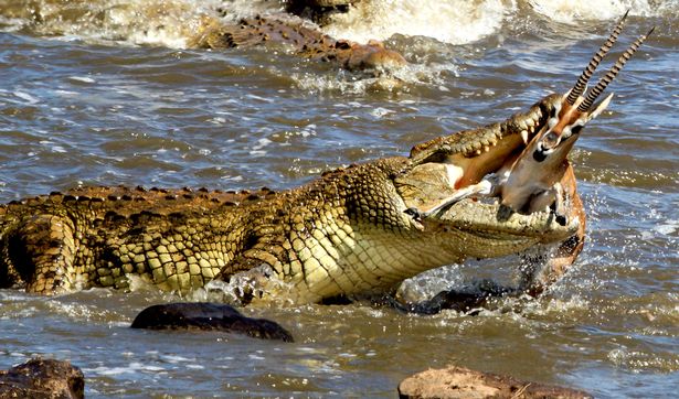 وأضاف أن الغزالة حاولت القفز والهرب في محاولة لإنقاذ حياتها لكن فكي التمساح نالا منه في قضمة واحدة.