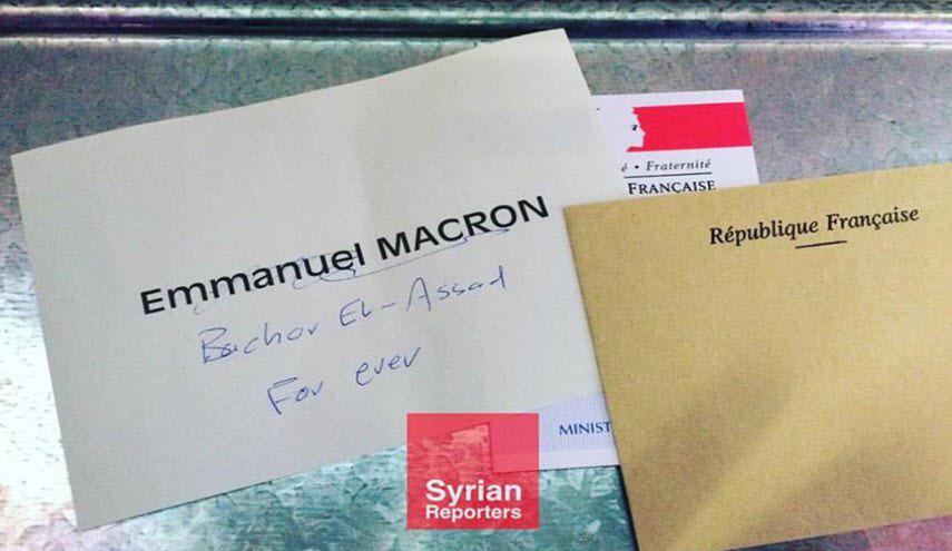 تناقلت بعض صفحات الإنترنت ومواقع التواصل الاجتماعي صورة لورقة تصويت للجولة الثانية في الانتخابات الرئاسية الفرنسية التي يخوضها إمانويل ماكرون وماريان لوبن، حيث اختار أحد المصوتين كتابة اسم الرئيس السوري بشار الأسد على الورقة التي تحمل اسم ماكرون، مضيفا تحتها عبارة "إلى الأبد".