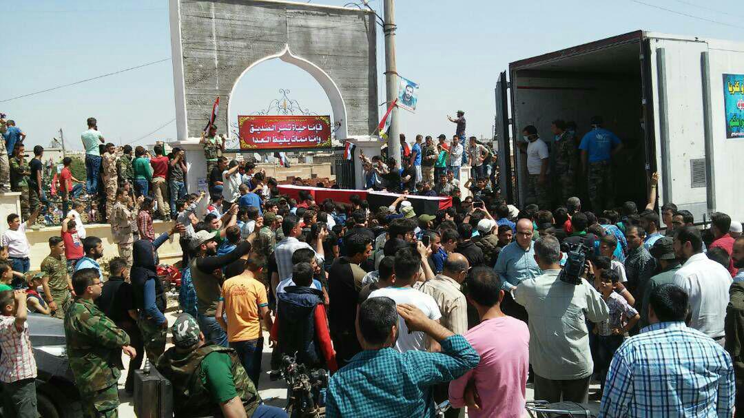 بمشاركة شعبية ورسمية شيعت من المشفى العسكري في حلب جثامين 65 شهيدا من أبناء بلدتي كفريا والفوعة الذين استشهدوا جراء التفجير الإرهابي الذي استهدف الحافلات التي كانت تقلهم في منطقة الراشدين غرب مدينة حلب في الخامس عشر من الشهر الماضي.
