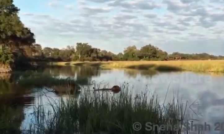وقال صاحب الفيديو إنه كان يخشى أن يكون الأسد قد قتل على يد التمساح، لكنه سرعان ما شاهده يخرج من الماء على الجانب الآخر من النهر.