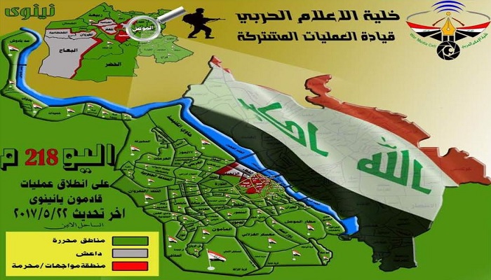 وتواصل القوات الأمنية المشتركة عملية تحرير مدينة الموصل من قبضة "داعش"، وذلك بعد إعلان القائد العام للقوات المسلحة رئيس الوزراء حيدر العبادي انطلاق ساعة الصفر في (17 تشرين الأول 2016)، لتحرير نينوى.