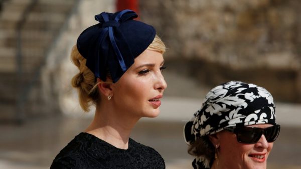 وكانت "الابنة الأولى"، البالغة من العمر 35 عامًا، ترتدي قبعة "يهودية"، مع شريط أسود بسيط، من مجموعة الأزياء الخاصة بها، حيث كانت حاضرة مع زوجها اليهودي، جاريد كوشنر 36 عامًا، في مراسم وصول الرئيس الأمیركي، إلى تل أبيب.