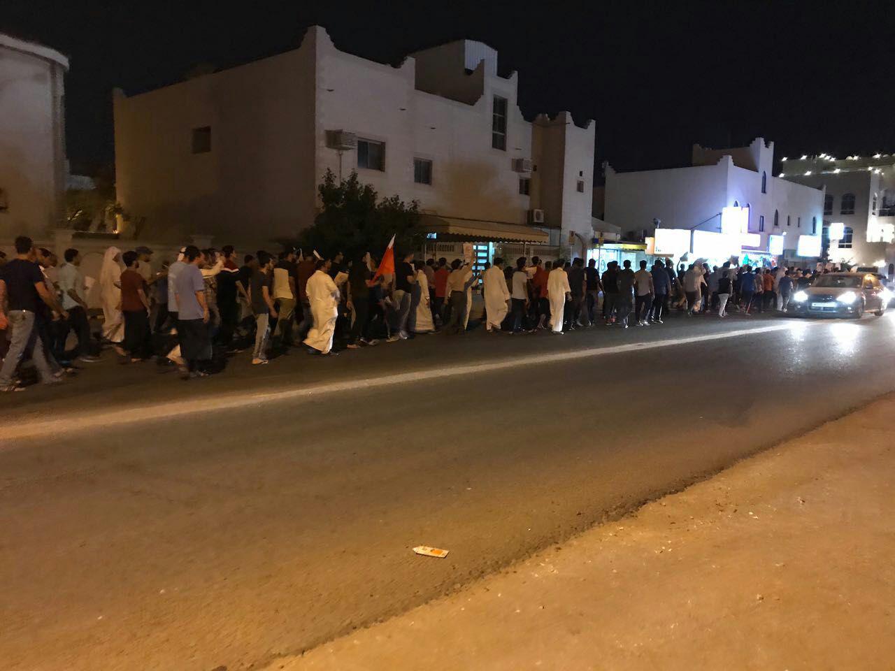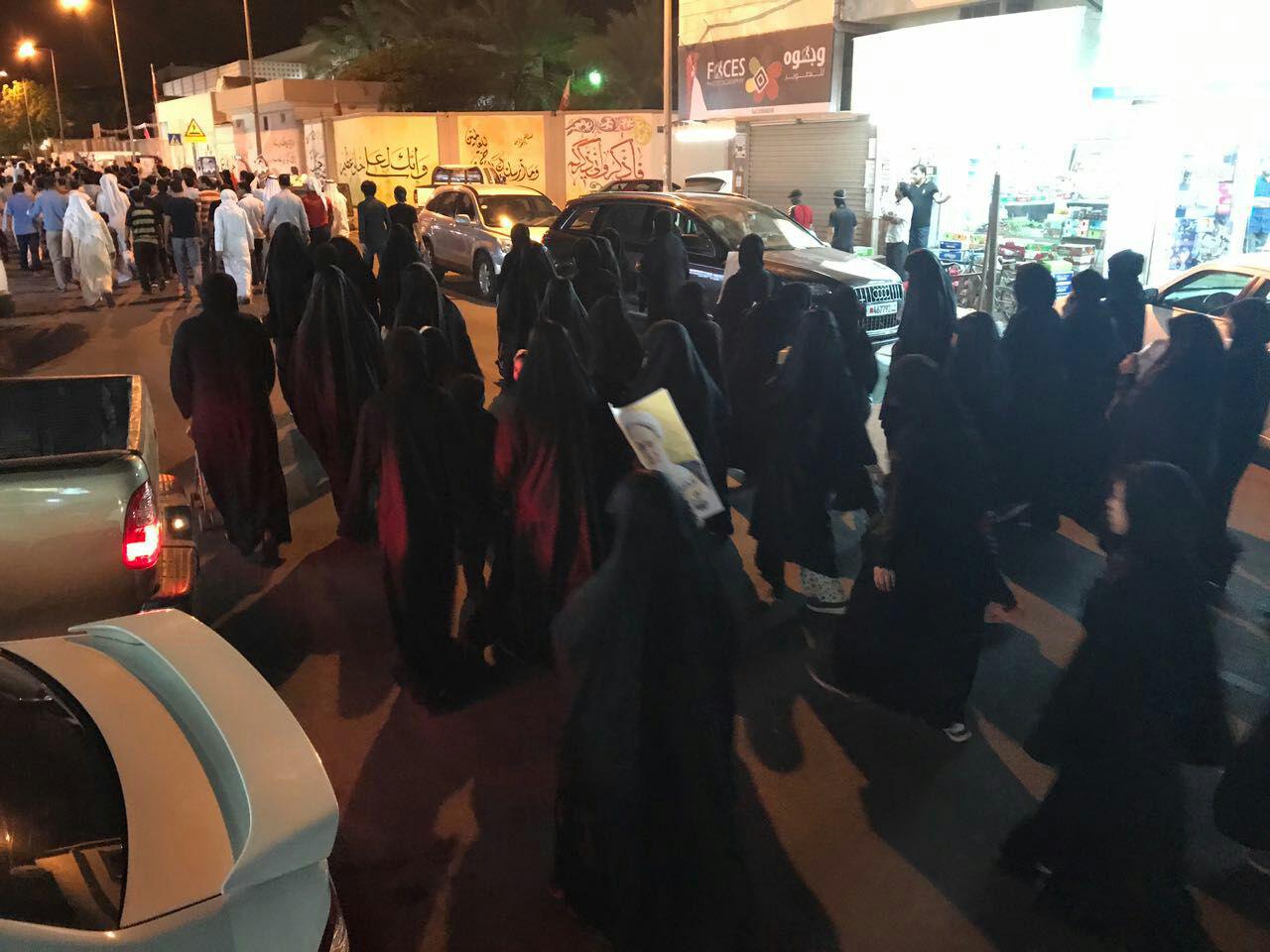 واستطاع البحرينيون من الاعتصام قرب بيت المرجع الديني الشيخ عيسى قاسم متحدين تواجد القوات الامنية البحرينية والسعودية.