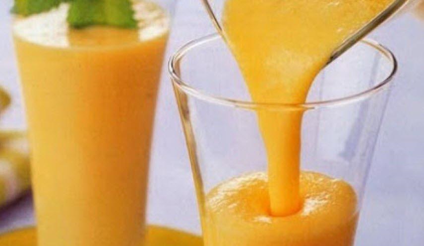 عصير برتقالة + موزة + ثلج او ماء بارد .
