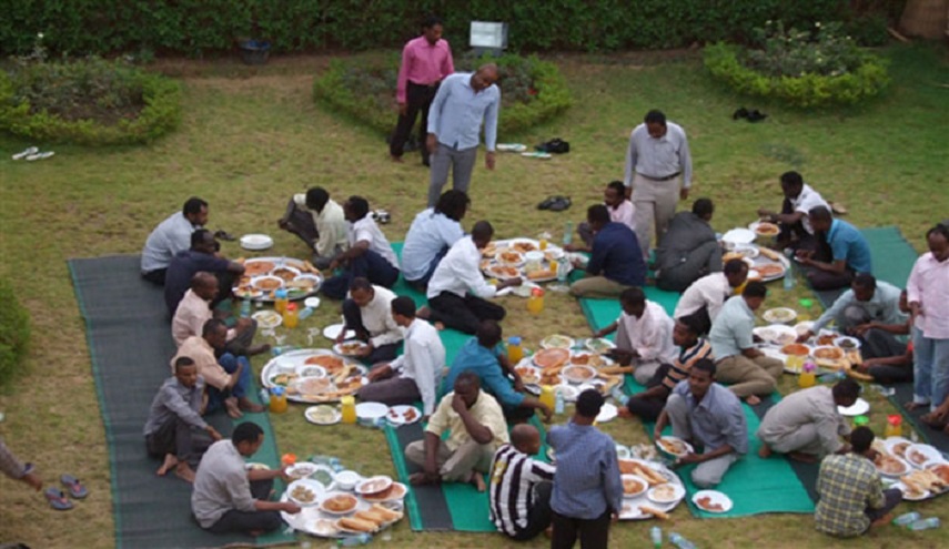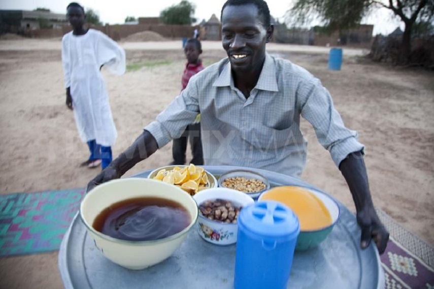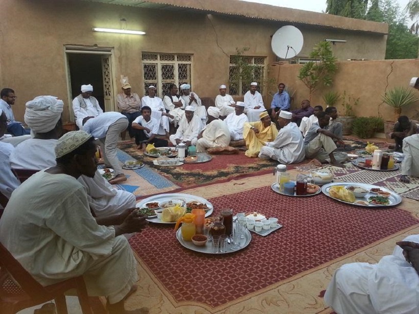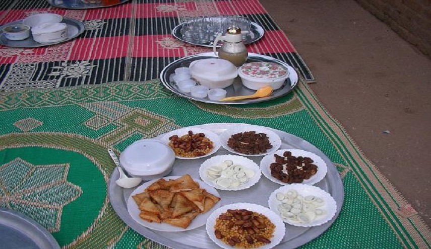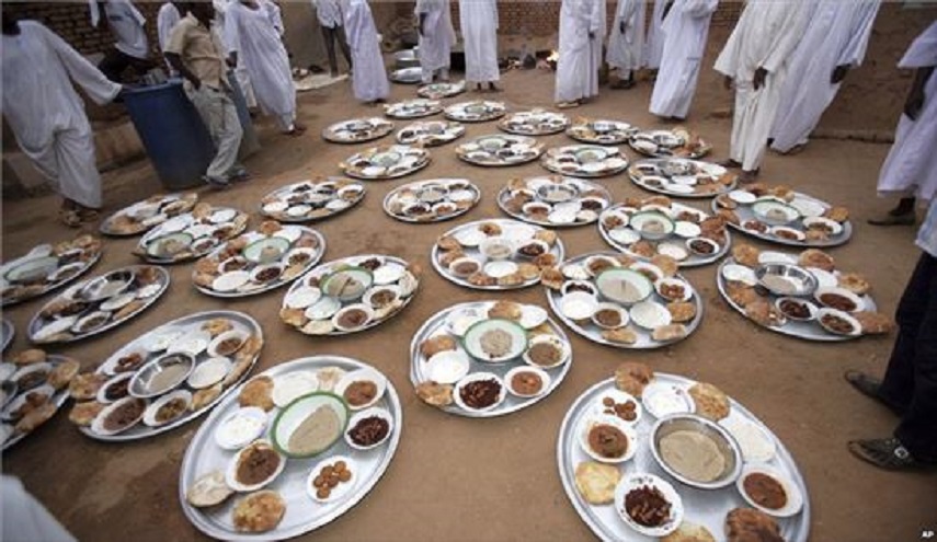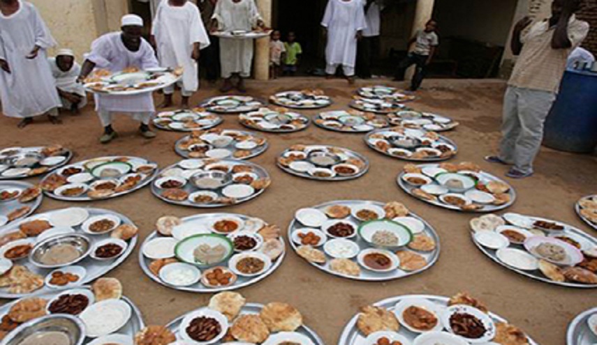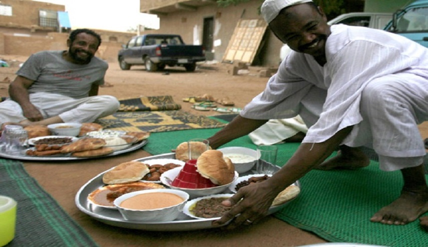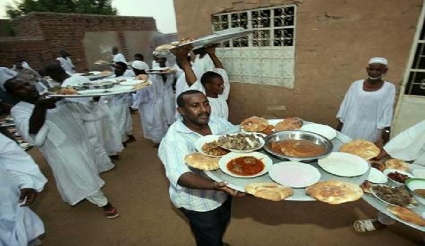 يتميز أهل السودان بالكرم والسخاء ففي شهر رمضان يحرص السودانيين علی إقامة الإفطار الجماعي في الشارع العام و أمام المنازل لكل عابر سبيل حتی یفوزوا بثواب إفطار الصائم، وأيضاً يتبادلون الطعام مع الجيران، و شخصية "المسحراتي" الموجودة عند كل الدول الإسلامية، و هم يفطرون بعد صلاة المغرب على أكل خفيف وبعد صلاة التراويح يتم تناول وجبة العشاء التي تتكون من اللحوم والخضار ثم وجبة السحور على الزبادي واللبن، و المشروب التقليدي الذي يفضله السودانيون أثناء شهر رمضان يسمونه «الحلو مر» و هو في أساسه خليط من الذرة المخمرة والبهارات وبعض الأعشاب، ويحتاج إعداده عدة أيام إضافة إلى مشروبات الكركديه والابري الأبيض والتبلدي والعرديب والقضيم، كما ظلت الأكلة الشعبية "العصيدة بالتقلية".