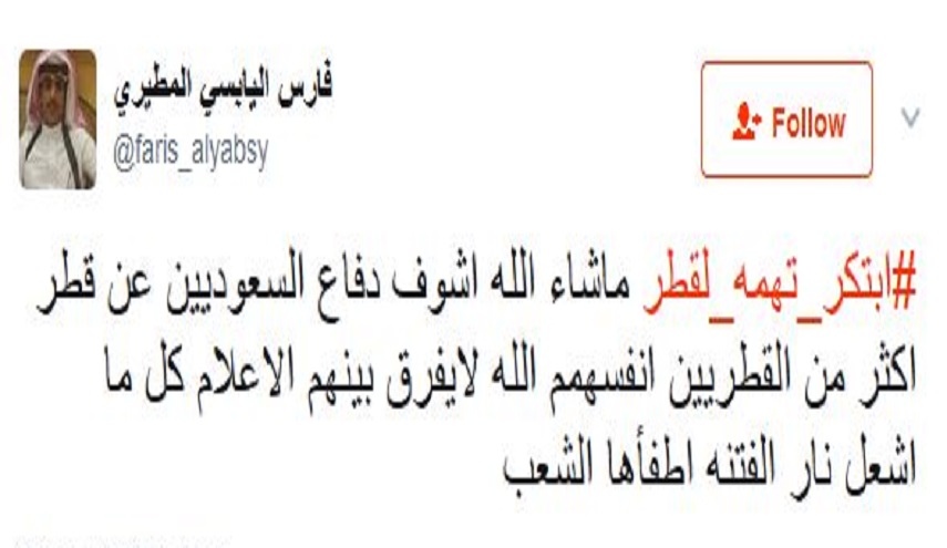 وقال مغردون إن التفاعل الكبير مع هاشتاغ "ابتكر تهمة لقطر" يبرهن على وعي الشعوب الخليجية وعدم تبعيتها لوسائل الإعلام الموجهة.