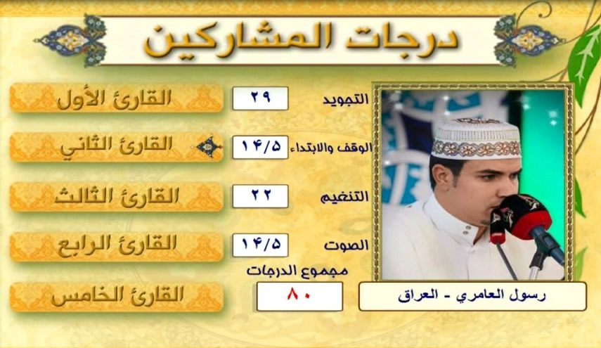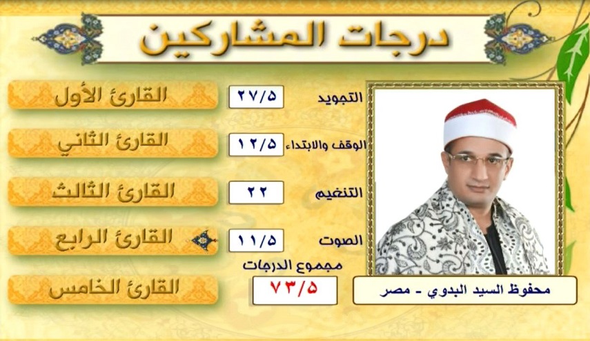 درجات المتسابقين في اليوم الخامس من المسابقة القرآنية الرمضانية