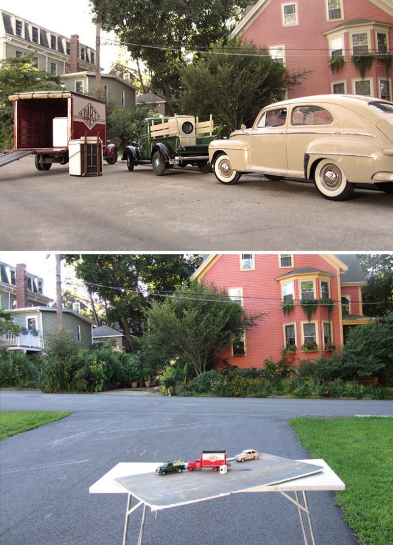 وتُظهر الصور وكواليس التقاطها مجموعةً كبيرة من الخدع؛ فزجاجة العطر ليست في المحيط بل في بركة مياه بالشارع مع لمسات اللون الأزرق، والسيارات القديمة لُعَب، وشاطئ البحر كومة رمال على الرصيف، وغيرها من الصور.