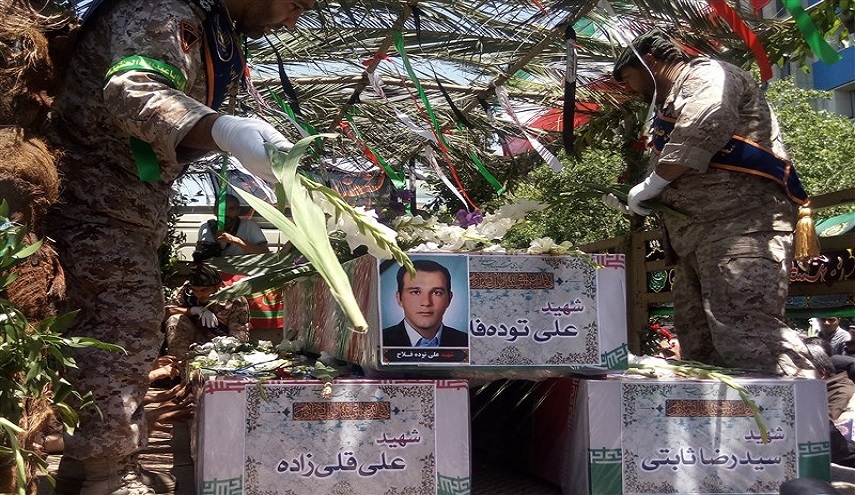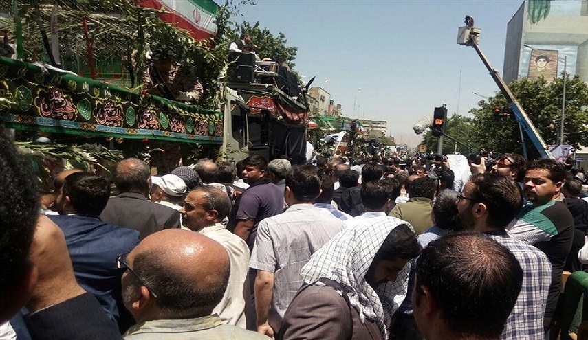 بعد صلاة الجمعة خرجت الجموع الغفيرة من امام جامعة طهران تحمل على سواعدها الابية والتي لاتقبل الذل ابدا في حياتها، هذا الدرس الذي استلهمته من عاشوراء كربالاء فاما العيش بعزة وكرامة واباء واما الشهادة في سبيل الاستقلال والشرف والحياة الحرة الكريمة فالشعب الايراني في الخط الامامي في تقديم شهداء اعزاء في سبيل الشعار الذي رفعه في اول ثورته وهو استقلال، حرية،جمهورية اسلامية، فهذا الشعب اليوم يشيع شهداء الانفجارين الذين حدثا اخيرا في طهران،وقد ردد المشيعون هتافات، الموت لامريكا والموت لال سعود والموت للصهيونية وطالبوا الحكومة الايرانية بالانتقام لشهداءهم الاعزاء الذين غدر بهم الفكر الوهابي الاسود بطريقة جبانة ذليلة فهو يشفي غليل انكساراته في العراق وسوريا واليمن بقتل الابرياء العزل وفي هذا الشهر الفضيل العزيز.فهنيئا لشهدائنا الابرار فكما قال الله تعالى فمنهم من قضى نحبه ومنهم من ينتظر ومابدلوا تبديلا.