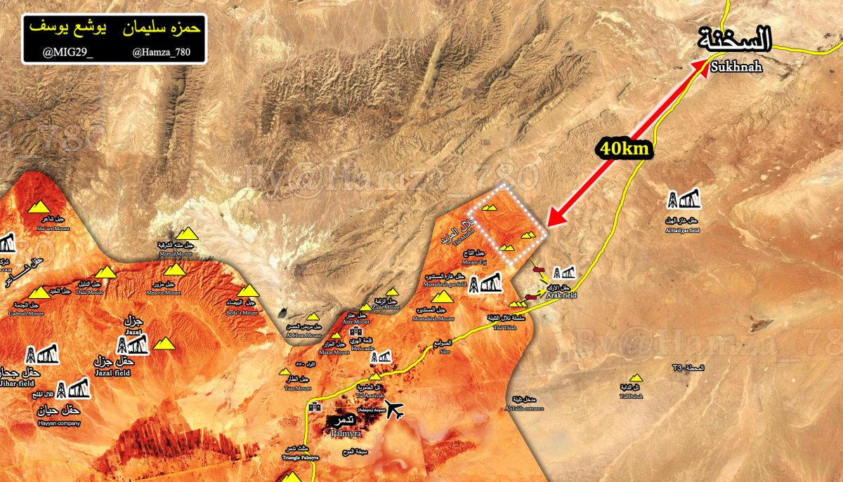 حقل آراك على بعد 4 كلم .. وعين الجيش السوري إلى ما بعد “السخنة” pic.twitter.com/FlkxSKt8hO